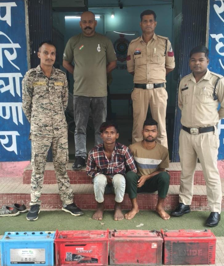 बैटरी चोरों पर घरघोड़ा पुलिस ने कसा शिकंजा, चोरी की 4 बैटरी के साथ दो आरोपी गिरफ्तार, चोरी के दो मामलों का खुलासा